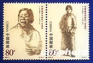 中国国家邮政局将在2004年2月4日发行的《邓颖超同志诞生一百周年》纪念邮票(1套2枚)。图案名称分别为:《中国妇女运动的先驱》、《老一辈无产阶级革命家》,面值各80分。邓颖超是河南信阳光县人,1904年2月4日生于广西南宁,1992年7月11日在北京逝世。中新社记者:邹宪