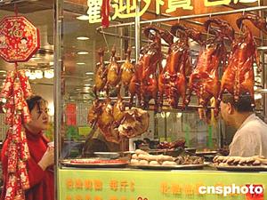 近日,香港停止输入内地活禽鸟及禽肉后,本地鸡、鸭、鹅等价格攀明显升,图为香港烧烤店生意反而看好。作者:钱兴强