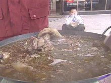据台湾媒体报道,天冷正是吃姜母鸭的最佳时节,但云林日前传出鸭只传染禽流感疫情,不少民众心生恐惧,连姜母鸭业者都遭到池鱼之殃,生意一落千丈。目前云林业者煮了一锅一锅的姜母鸭,免费请大家吃,借着县长的大力促销,希望走出禽流感的阴霾。