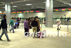 澳门新关闸边检大楼二日开始启用,宽敞明亮的大厅和多达七十一条的进出通道,使通关能力大大提高。据澳门海关有关人员统计,二日进出关人数达六万六千人次,但新关闸进出大厅均比原来老关闸通关能力有明显的提高和顺畅。图为通畅的新边检大楼入境大厅。中新社记者:李刚