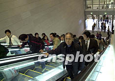 澳门新关闸边检大楼二日开始启用,为了充分利用现有的空间,新边检大楼分为上下两层,出境的旅客需通过扶梯从二楼前往出境大厅。中新社记者:李刚