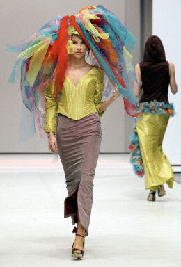当地时间2月1日,在德国杜塞尔多夫举行的秋冬时装展上,模特展示设计师Anja Gockel的作品。