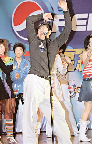 身为百事一哥代言人的城城,看到参赛者的表演也忍不住露一手,压轴演出时,他边唱边跳,一度把衬衫揭起露出肚皮,看得台下歌迷哗声四起,而城城越唱越勇,令一班百事青年大使陈冠希和萧正楠都看得目不转睛赞叹不已。