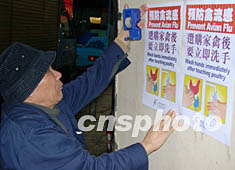 随着亚洲禽流感爆发区域日渐增多,香港防禽流感之力度也与日俱增。图为二月三日街市醒目张贴防禽流感宣传单张。作者:潘索菲