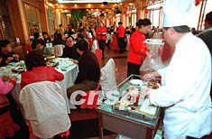 2月3日,北京老字号“全聚德”烤鸭店依然生意兴隆。该店的烤鸭原料全部选自北京地区,一直执行严格的卫生检验标准。作者:张雷