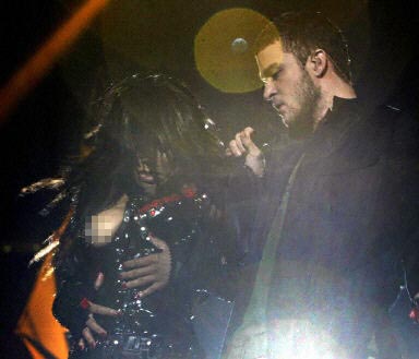 美国歌手珍妮-杰克逊与贾斯汀在美式足球超级杯大赛中场演出时公然露胸引发轩然大波,珍妮-杰克逊当地时间2日晚上对媒体发表道歉声明。她表示,撕扯上衣的点子是总彩排结束后才临时决定的,想不到正式上场时擦枪走火而让原本预期的演出效果走样。图为珍妮·杰克逊与布兰妮的前男友贾斯汀一起演唱。