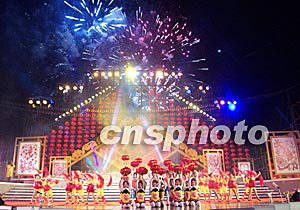 二月四日晚,福州市二千多名民群欢聚在榕城广场上观看由福州市住宅发展中心等单位承办的“二00四年金山之春大型元宵文艺焰火晚会”提前感受元宵节日气氛。作者:郑祚声