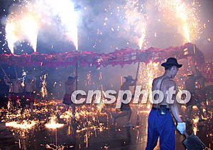 正月十五元宵节,重庆村村点火把,镇镇舞龙灯。在“中国龙灯之乡”铜梁县传统的“火龙”通体透亮,金灿灿的火花在空中飞溅,光闪闪的巨龙在夜空中呼啸起舞,上下翻飞。作者:范卉