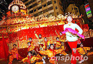 为增添元宵佳节热闹气氛,香港时代广场举办“元宵国艺表演”,12名功夫小子献演“灵猴献瑞”和中国传统舞蹈呈现喜气洋洋。作者:洪少葵