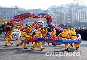 长春龙腾狮舞庆元宵佳节。樊甲山 摄