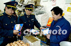 二月六日,北京东城工商分局工作人员为辖区十个集贸市场出售禽类产品的商户送去新出版的预防“禽流感”的书籍。作者:罗伟