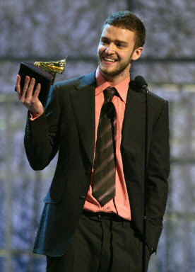 第46届格莱美颁奖典礼今天在美国洛杉矶Staples中心举行。图为著名歌手贾斯汀(Justin Timberlake)获最佳流行男歌手奖。