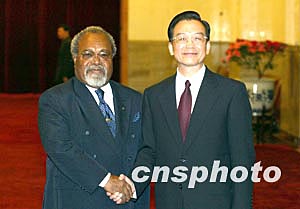 中新社北京二月九日电 (记者 朱大强)中国国务院总理温家宝今天在此间与来访的巴布亚新几内亚独立国总理索马雷会谈时表示,中国政府希望与巴新政府一道继续努力,推动两国关系不断发展。