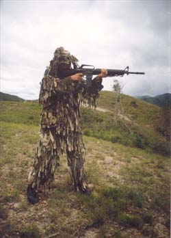 夏日的一天,我与队友们乘车颠簸了一个昼夜后,终于在一片原始森林深处停了下来。大家刚走下班车,天空顿时雷声轰鸣、狂风大作,豆大的雨点倾泻而下。此时教官一声令下,“选拔开始!”我与身边的战友立即背起35公斤重的武器装备,腰别国产指北针,手持调制要图,脚穿陆战靴,顶着狂风暴雨,开始了在云雾中的冲刺。