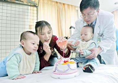 剖腹产后,令人惊喜的情景出现了———母亲的非典症状逐渐解除,两周后康复,而诞下的双胞胎楚楚和阳阳都没有感染。