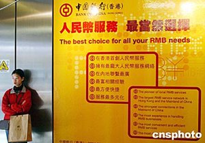 日前,中国人民银行行长周小川来香港参加国际结算银行会议时表示,继人民币信用卡已在香港使用后,香港银行将在二月二十五日起,可以开办个人人民币业务,包括人民币存款和汇款业务。近日,中银香港已在报章等媒体展开人民币业务的宣传,在地铁站口人民币业务的广告十分醒目。作者:钱兴强