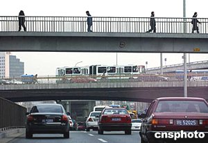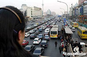二月十六日上午,北京市区的西三环交通一片繁忙。北京市代市长王岐山当天在北京市十二届人大第二次会议上做《政府工作报告》时提出,北京要加快交通设施建设速度,逐步缓解城市交通拥堵。中新社记者:满会乔