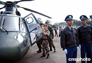 英国驻华使馆海军空军武官庞凯思上校在1980年至1982年,曾经在香港石岗军营服役,当时他只是一个驾驶直升飞机小兵。如今虽已不再飞行,但对昔日的岁月仍很留恋,庞凯思甚至握住驻港部队政委刘良凯少将的手,幽默地说,如果你要请飞行员,可以考虑招收我。