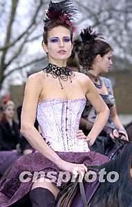 2004年2月,在英国伦敦秋冬时装周上,著名时装品牌Harriets Muse别出心裁,在伦敦街头举行服装展示,引来许多路人关注。Ic/cnsphoto 摄