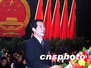 2月19日上午,张宝顺在山西省十届人大二次会议上,当选为山西省省长。图为张宝顺在二月十二日举行的山西省十届人大二次会议上作《政府工作报告》。作者:张恩