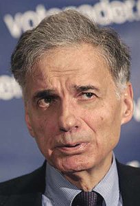 本周即将年满七十的纳德二000年曾经以绿党候选人的身份参与总统大选角逐,虽然仅获得百分之二点七的选票,但因为布什在佛罗里达和新罕布什尔两州仅以微弱的优势压倒戈尔,取得这两州的选举人票而登上总统宝座,民主党人认为纳德的得票分流了本来支持戈尔的选民,导致戈尔落败。