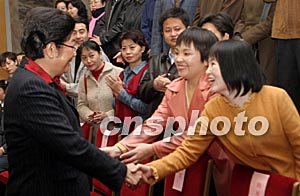 二月二十五日,由中国妇女杂志社主办的2003年度海内外有影响力的《中国妇女》时代人物评选揭晓。全国人大常委会副委员长顾秀莲(左),在北京人民大会堂接见各位时代人物。中新社记者:史利