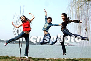 2月26日,来自江苏、上海、安徽等地的38名优秀选手齐聚常熟,进行为期三天的2004年国际旅游小姐江苏赛区总决赛。图为参赛选手在尚湖风景区进行外拍。作者:蒋振江