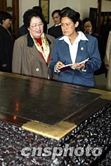 正在北京访问的泰国诗琳通公主二月二十七日在紫檀博物馆馆长陈丽华女士的陪同下参观中国紫檀博物馆,感受中国传统文化的深厚内涵。中新社记者:毛建军