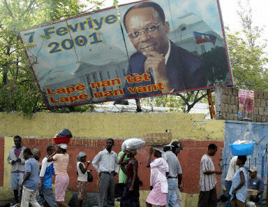 美联社一名记者29日上午目睹了一架白色喷气式飞机从太子港起飞。据莱斯里称,总统阿里斯蒂德和他的保安司令就在飞机上。