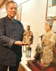 据台湾媒体报道,这些神像的收藏者董振雄是两岸钻研妈祖文化的少数专家之一。他长久以来在两岸三地往来旅游、考察,这项“历代妈祖神像展”展出的70尊妈祖神像,是董振雄收藏的一半而已。