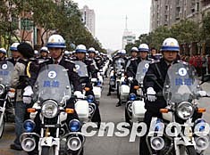 广东佛山市城管执法局三月三日举行挂牌授旗仪式,正式宣告成立并上街执法。图为装备整齐的佛山市城管执法局工作人员上街执法。作者:唐贵江