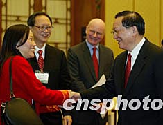 今天下午,唐家璇在人民大会堂会见了来京参加香港国泰航空公司复飞北京航线庆祝活动的香港各大商会及有关企业负责人。