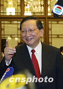 唐家璇在会见时说,中央政府将继续坚定不移地贯彻“一国两制”方针和基本法,并尽最大努力帮助香港振兴经济,坚决维护香港的繁荣稳定。