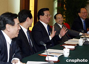 温家宝今天来到出席全国政协十届二次会议经济界和农业界委员下榻的铁道大厦。在经济界和农业界联组会上,温家宝认真听取委员们的发言,他感谢委员们对政府工作的关心和支持,表示要认真研究大家的意见和建议,努力改进政府工作。