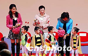 “2004年香港花卉展” 3月5日在维园举行,民政事务局常任秘书长李丽娟【右】、香港旅游发展局主席周梁淑怡议员【中】、香港小姐曹敏莉等嘉宾主持开幕典礼。政府官员及嘉宾主持花卉展开幕典礼。作者:洪少葵