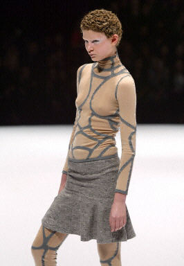 3月5日,在巴黎2004/2005秋冬时装周上,模特展示设计师新款时尚秋冬女装。