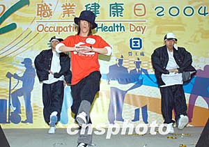 歌星麦浚龙3月6日在香港出席由职安局及劳工处举办之《职安健康日2004》开幕典礼活动,麦浚龙为大会载歌载舞献唱其新歌「真功夫」。作者:邓庆乐
