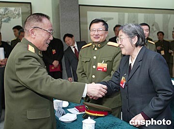 中共中央政治局委员、中央军委副主席、国务委员兼国防部长曹刚川七日上午看望了出席全国政协十届二次会议的特邀组军队政协委员,并与大家一起讨论政府工作报告。