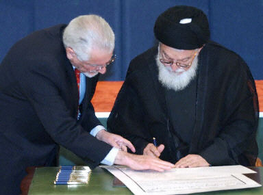 这个仪式原定上周五(5日)举行,但伊拉克什叶派穆斯林最高精神领袖提出反对,仪式不得不临时取消。就在代表们星期一(3月8日)汇聚在巴格达的会议中心参加签字仪式之际,巴格达中部发生了一系列大爆炸。