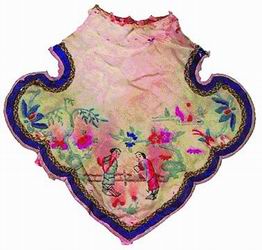 潘教授介绍说,古代内衣“奥秘无穷":“亵衣”、“心衣”、“宝袜”、“抹胸”、“主腰”、“肚兜”,内衣的名称不下几十种;从长方形、菱形、三角形、半圆形到优雅的倒花蕾形、吉祥的“如意”形,古代内衣的款式之多也远不是现代文胸可敌。