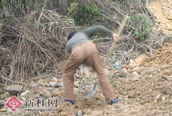 这一情况被反馈给负责管辖这一带的南宁市兴宁公安分局腰塘派出所。干警随即前往现场查看,从外观上看,深埋鸡爪的地方的确有翻挖过的痕迹,而且原来在附近的两个大土包不见了。由于地下深埋的东西涉嫌疫情,派出所在安排人员看守现场后,将情况反映给检验检疫部门。