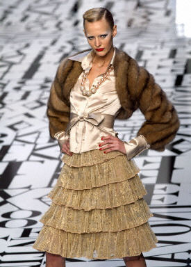 在巴黎2004/2005秋冬时装周上,模特展示设计师新款时尚秋冬女装。