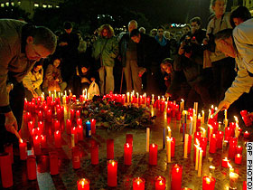 图文:西班牙巴塞罗那居民为死难者烛光守夜