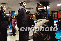 中国银行首席新闻发言人王兆文近日透露的中国银行计划明年整体上市的消息为中国股市在春季运作带来活跃气息。三月十二日,北京股民在一家证券营业部观察中国沪深股市大盘和个股的新变化。当日沪深股市走出了小幅振荡的走势。中新社记者:邹宪