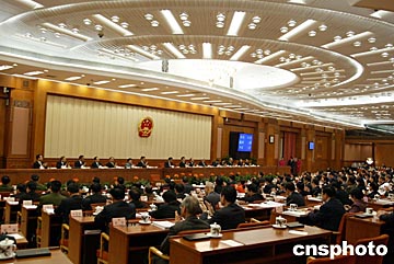 十届全国人大二次会议主席团今天下午举行第三次会议,主席团常务主席吴邦国主持会议。按照大会议程,这是本次人代会的最后一次主席团会议。