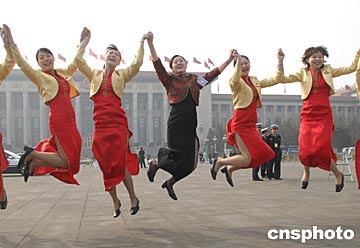 组图:礼仪小姐快乐"起舞"庆祝"两会"闭幕