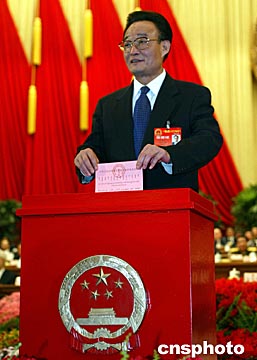 图:吴邦国投票表决“宪法修正案草案”