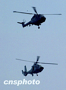 中法直升机在三月十六日的中法联合军事演习中进行编队战术演练。中新社记者:宋吉河