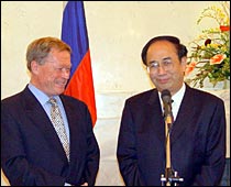 赵启正表示,能接受俄罗斯总统的“圣彼得堡300周年纪念章”他感到十分荣幸,在表达对普京总统感谢的同时,他也对普京顺利连任表示了衷心的祝贺。他说,俄罗斯是文明古国,科技大国,他将鼓励中国媒体更多地报道俄罗斯,向人们讲述她的历史、她的文化、以及她光辉的明天。(李滔)
