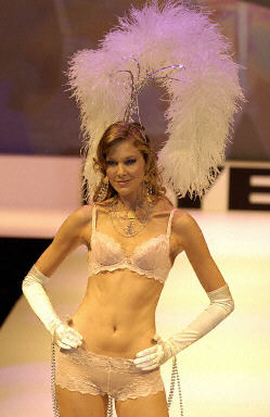 3月17日,在巴黎的ready-to-wear流行时尚展览会上,模特展示了Myer lingerie的新款内衣。